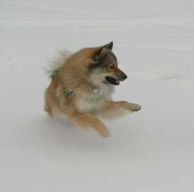 Arabella das Leichtgewicht kann auf dem Schnee laufen.