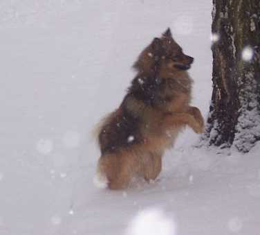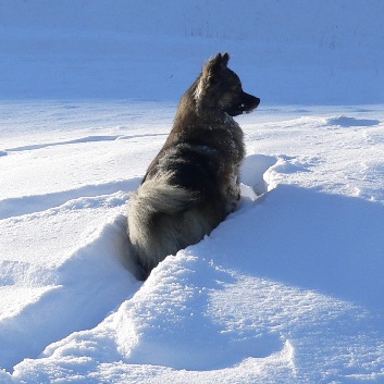 Nun hat es Aramis leichter über den Schnee zu schauen.